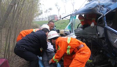 11月15日清晨,湖北省襄陽市一輛裝載鐵架小型貨車行駛至襄南大道尹家河橋附近時,車輛追尾前方一輛道路清掃車后失控沖下路基,致貨車司機(jī)被困駕駛室。襄陽消防支隊萬山中隊于7時51分接警后,調(diào)集1輛搶險救援車、1輛水罐消防車10名消防官兵趕赴現(xiàn)場救援。
