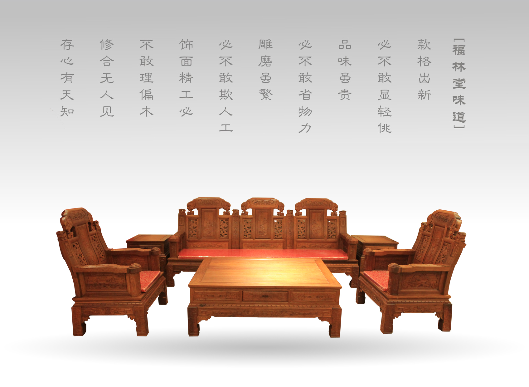 其次,我們可以根據前面對紅木家具的分類,分別進行選購,對仿古紅木沙發:應參考圈椅、官帽椅等形制相似的家具,即對其材質、雕工、拼料、榫卯結構等因素仔細辨別;而對新中式紅木沙發:則應當著重考量家具設計的優劣和工藝的運用。