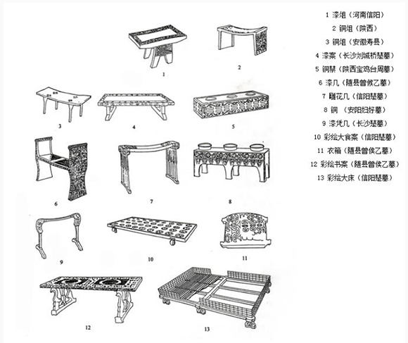 到了春秋戰國時代,這個時期的家具以楚式漆木家具為典型代表,具有絢麗無比的色彩,浪漫神奇的圖案,以龍鳳云鳥紋主題,充滿著濃厚的巫術觀念。那時也出現了中國最早的臥具——彩繪木床(后世各類床具的始祖),以及開始出現具有純粹裝飾欣賞價值作用的楚式小座屏。
