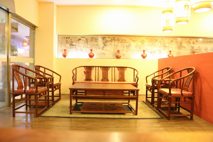 沙發其余之處之外觀設計,則基本保留了圈椅原始之結構特點:注重線型變化,形成直線和曲線的對比,方和圓的對比,橫與直的對比,具有很強的形式美。以清秀雅致見長,以簡練大方取勝。采用了多種精巧的榫卯結構作為組合,以之楔釘榫搭配之月牙扶手最為別致特色。