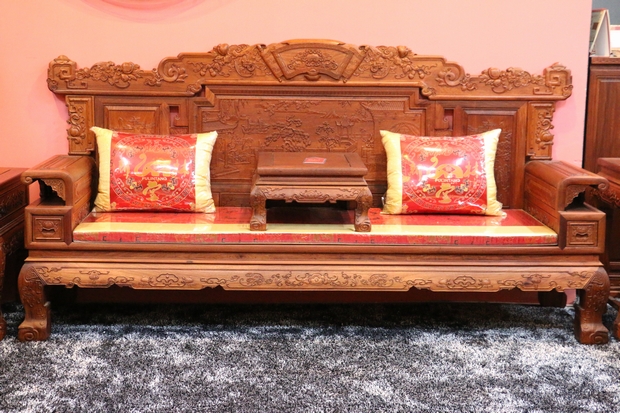關(guān)于該系列沙發(fā)的具體詳情細(xì)節(jié),考慮到其雕琢繁冗圖案眾多的緣故,我們就著重從其紋飾入手,通過解析其寓意、并從外觀結(jié)構(gòu)上依次進(jìn)行介紹、另外針對產(chǎn)品的制作工藝、實用性等特點進(jìn)行補(bǔ)充描述。