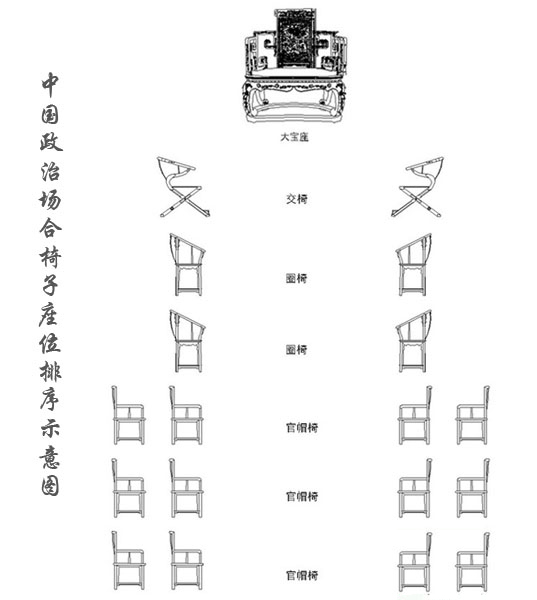 首先,中國的椅子等級高于凳子,其次靠背椅(泛指有靠背的椅子)的等級高于扶手椅(無靠背的椅子),靠背椅中的寶座是專供帝王使用,象征著最高統治者至高無上、獨一無二的權力和地位。